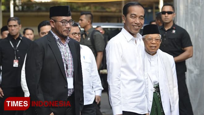 TIMES Sleman/Presiden terpilih, Jokowi, saat tiba di Gedung KPU RI, Minggu (30/06/2019). (FOTO: Hasbullah/TIMES Indonesia).